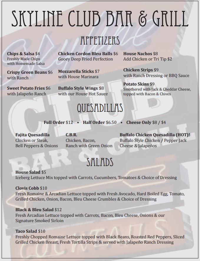 Welcome to Skyline Club, your go-to destination in Clovis, CA, for a vibrant dining experience! Located at 1419 Railroad Ave, we offer a delightful menu featuring traditional grill dishes, refreshing cocktails, and a wide selection of local beers. Whether you're enjoying a takeaway meal or dining in our casual atmosphere, there's something for everyone here. Join us for lively events including karaoke, live music, and sports screenings, making it the perfect spot for lunch, dinner, or a night out with friends. With accessibility options and a welcoming vibe, Skyline Club promises a memorable outing for everyone.